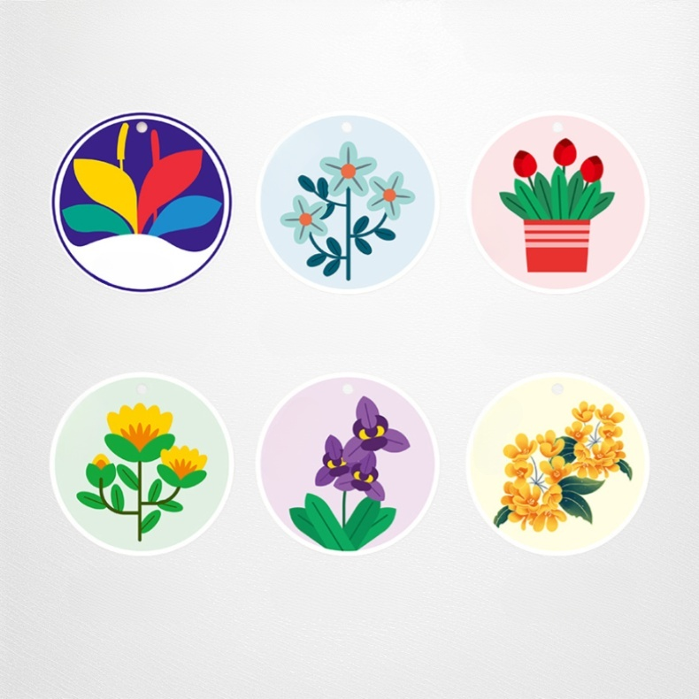 色:オオバコ、ルリマツリ、チューリップ、レンギョウ、バイオレットオーキッド、キンモクセイ